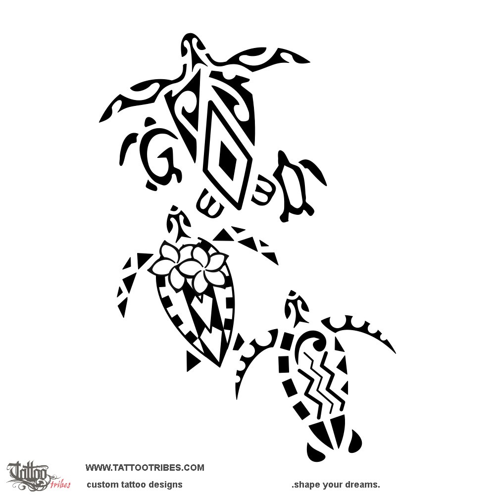 Siblings Polynesian three turtles tattoo