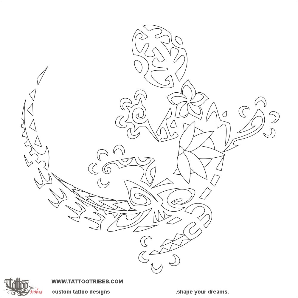 This Polynesian style gecko tattoo (mo´o´ārara in Tahitian) was prepared for Adam to celebrate his family, matching a tattoo on his left calf.