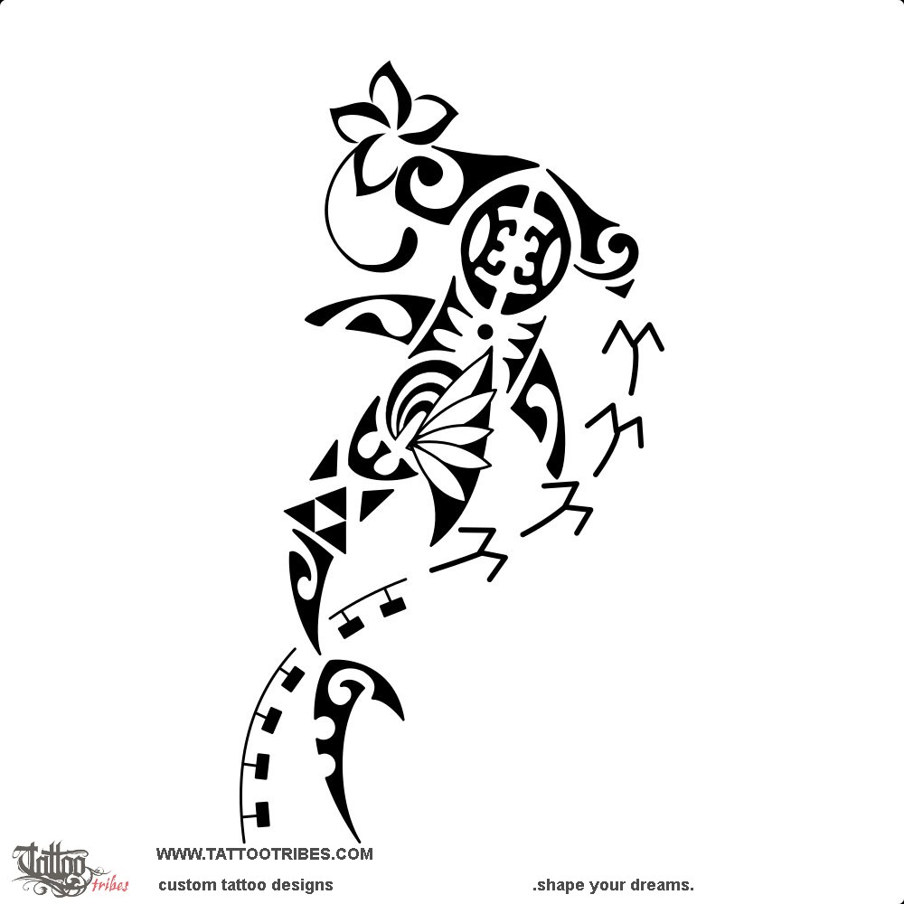 The couple is central for its importance, bringing stability (the mountains) and unity (the flax leaves), while the frangipani and the ipu are symbols of femininity and fertility, protected by the tiki eyes that shape the fins of the shark, and by the tiki hand.