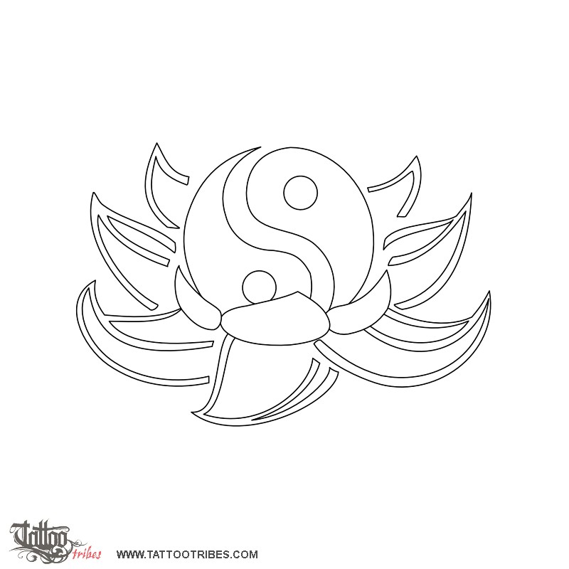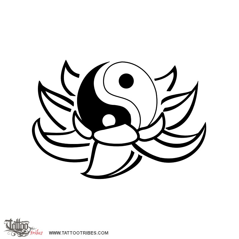 The Yin and Yang symbol represents balance, completing opposites, and the lotus flower symbolizes perfection and overcoming adversities.