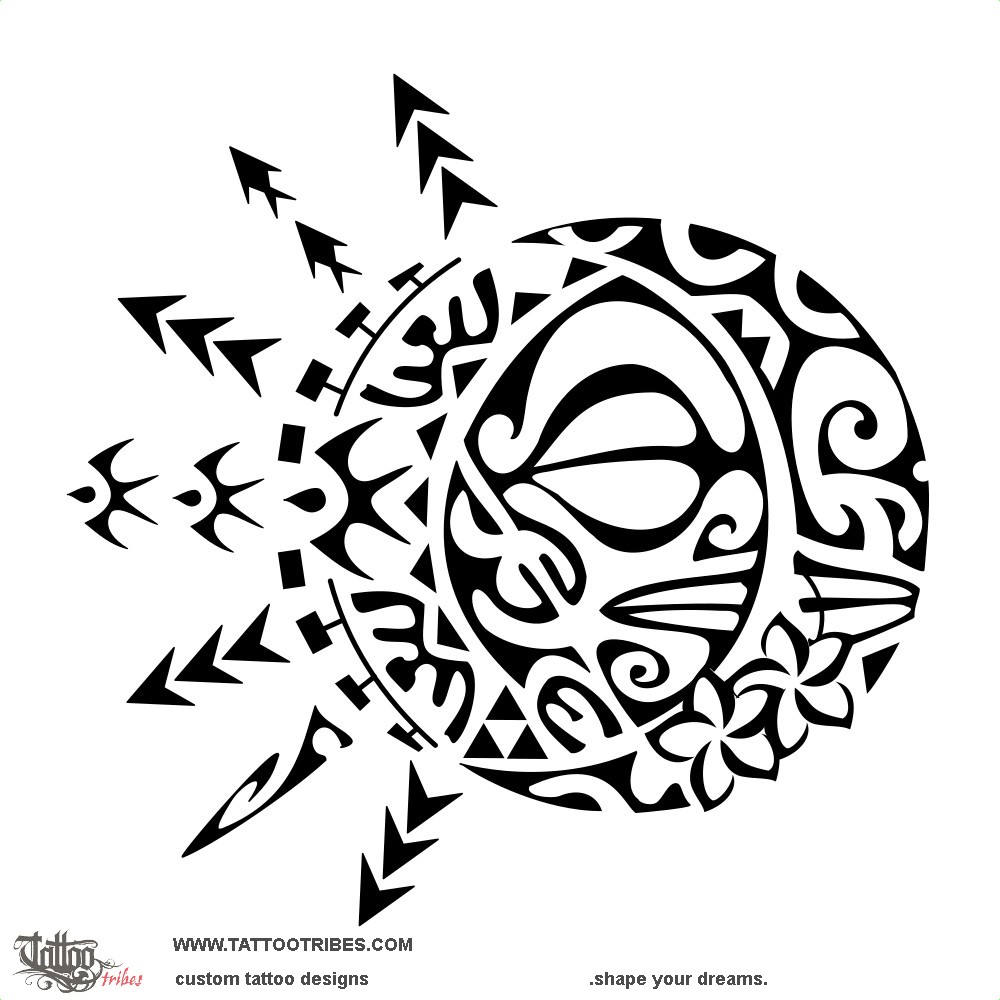 Ultimate 3x2 bundle: $The sun and moon of this Polynesian style tattoo designed for Daniel are two tiki that protect his daughters represented by two plumeria flowers.