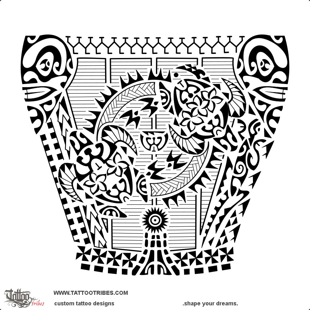 Both tattoos share matching edges made by ancestors on top and stepping stones at the bottom, along with the ahuahu o Mataora and the two tiki on the sides since both tattoos tell stories of challenges and bring protection.