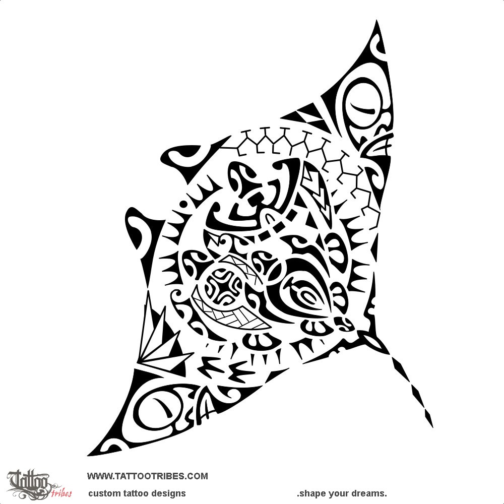 This manta shaped Polynesian tattoo was prepared for Antonio and it includes three turtles representing the members of his family.