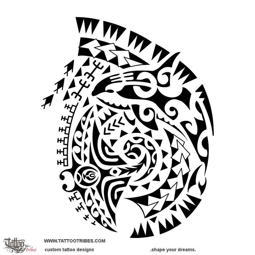 The spearheads represent the warrior, and we placed a killer whale next to them to show his love for the ocean and the creatures living in it.