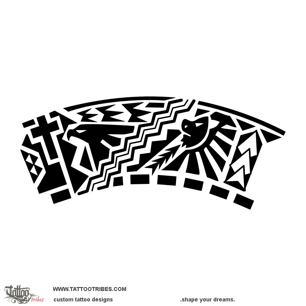 Additional symbols are shark teeth and spearheads next to the lion to symbolize strength and courage, and the path to knowledge with birds next to the eagle to symbolize wisdom and watching the world from a higher perspective.