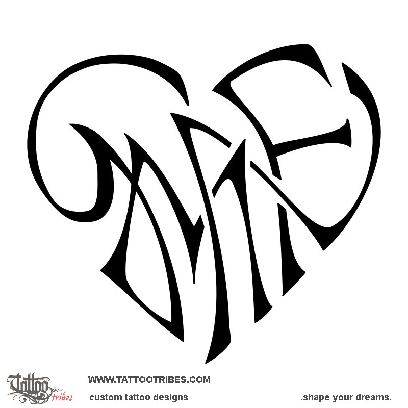 This heart tattoo prepared for Fabrizio was designed using the letters G+M+N+F woven together to symbolize the union shared by the members of his family.