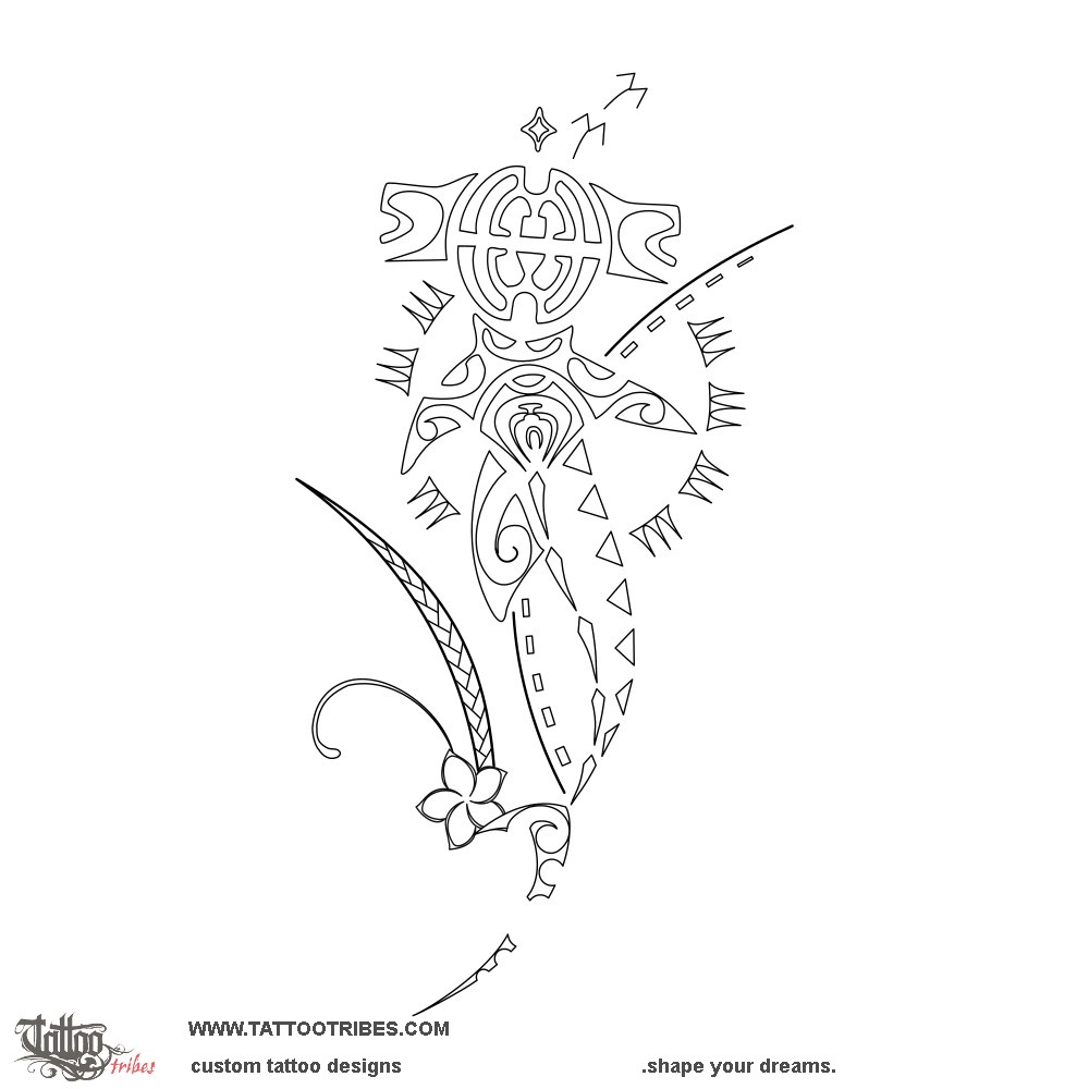 Ultimate 3x2 bundle: $This Polynesian hammerhead shark tattoo prepared for Carissa was designed to integrate a small turtle tattoo she already had, and since the turtle is a symbol of family, we placed a koru for new start and braid for union next to it.
