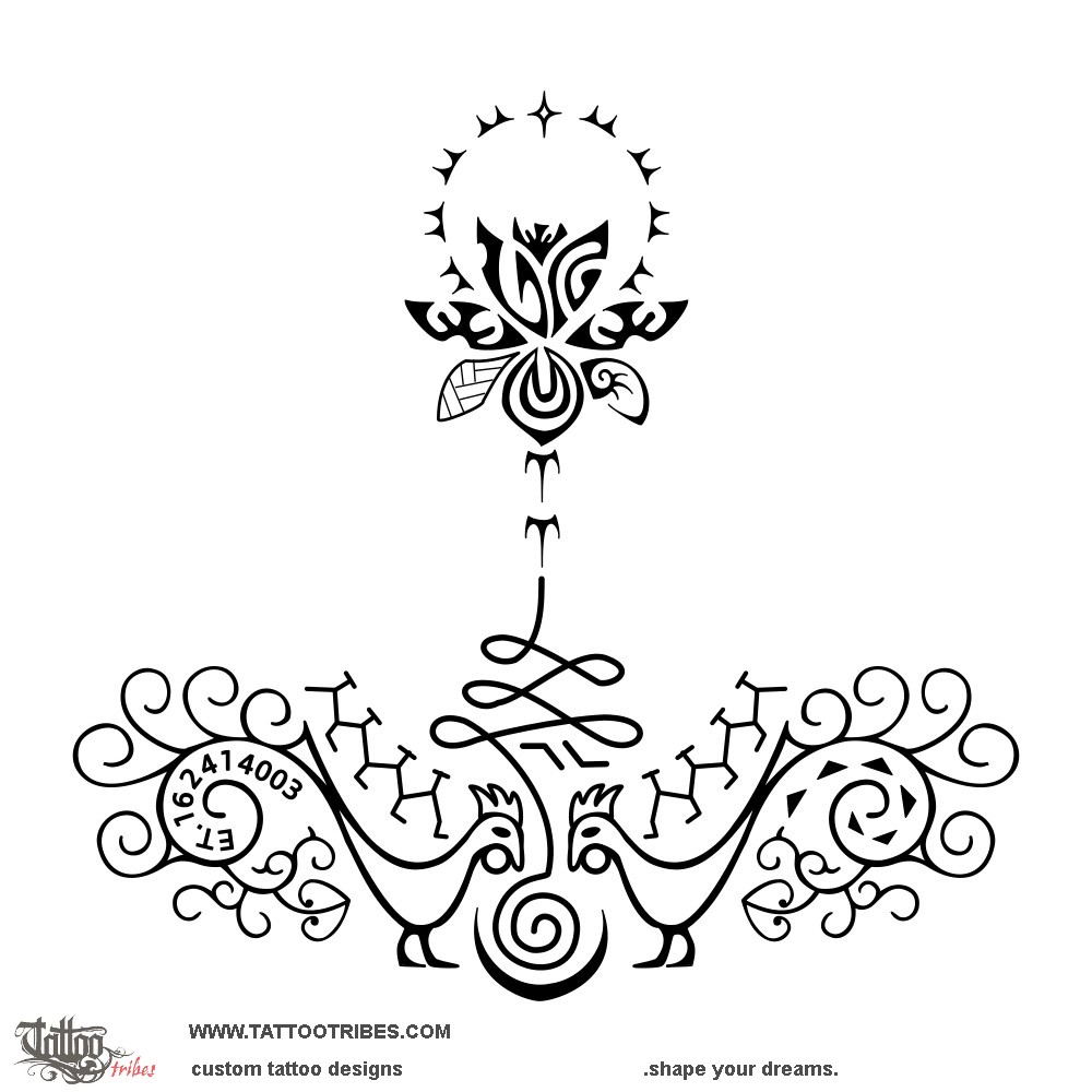 The colored image below shows the main elements within the tattoo: