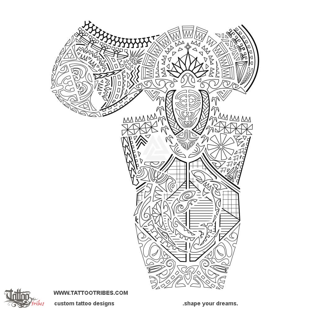 sleeve and pec tattoo by joining Polynesian and Scottish elements.
