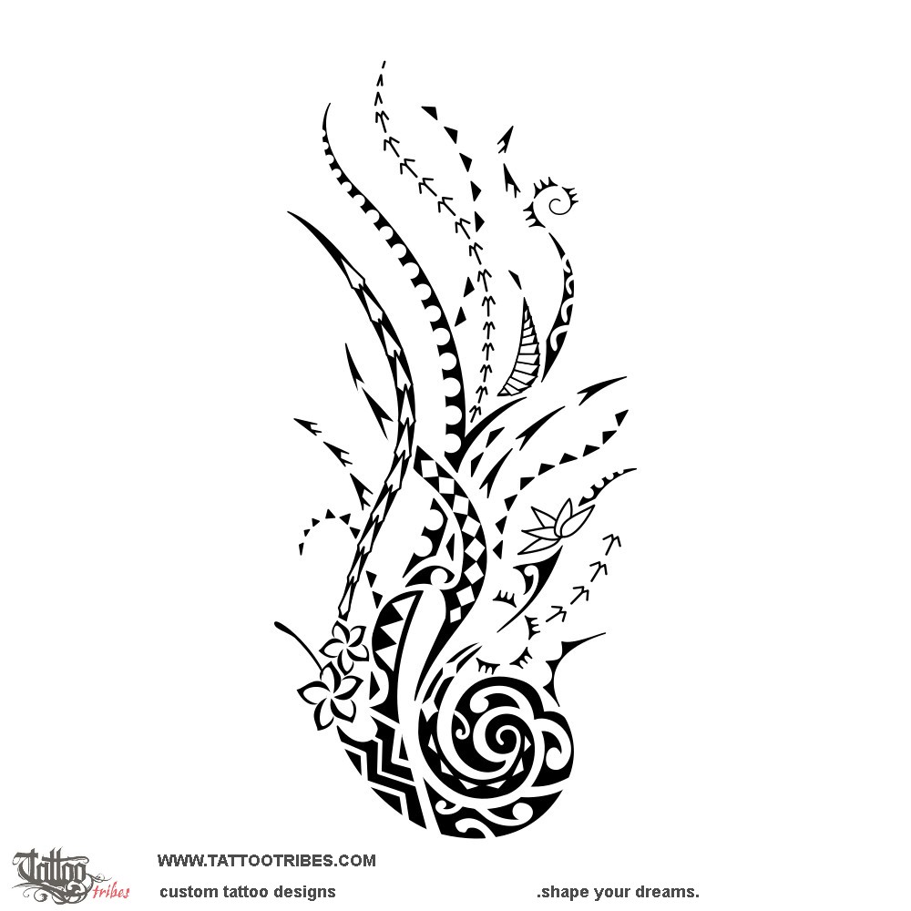 Other elements are spearheads for courage and the warrior, shark teeth for adaptability, strength, and protection, octopus tentacle for tenacity and perseverance, waves for change, birds for voyages, mountains for stability, and fish and fishhook for prosperity.