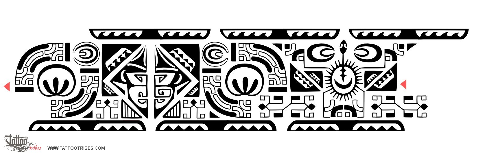 The style of Hiva Oa, which is mainly used in modern Marquesan tattooing is more figurative than the other styles, and it provided some elements that were used in this ankle band, even if we redesigned some of them in order to recall better known symbols: it´s the case of the turtle on the back, with sun and moon on the shell, and of the facing tikis on the front.