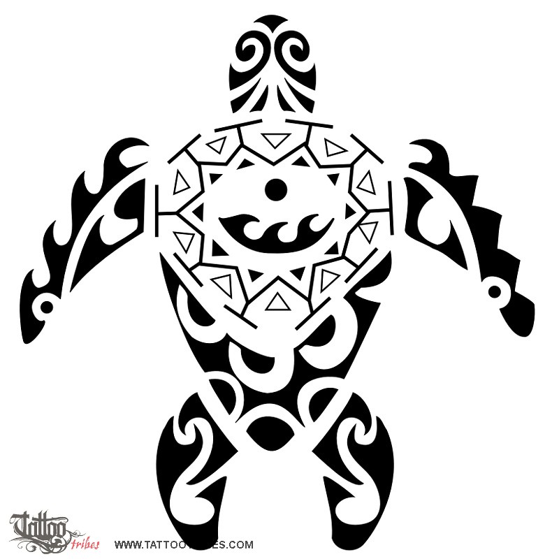 This turtle was requested by Alessandra: the dots inside the front fins symbolize her standing points, her own islands, and the fins themselves with the motifs of sun and land show how important for her is the connection with the sea and with her land. True joy though, her inner "sun", comes from real sun and from the sea , from the waves, strong and irresistible, quiet and sweet, that have no boundaries. In the sea, and in her roots, resides her richness, symbolized by the fish hooks, or matau, placed on the back fins. Stylized korus for the eyes represent a new beginning ahead.