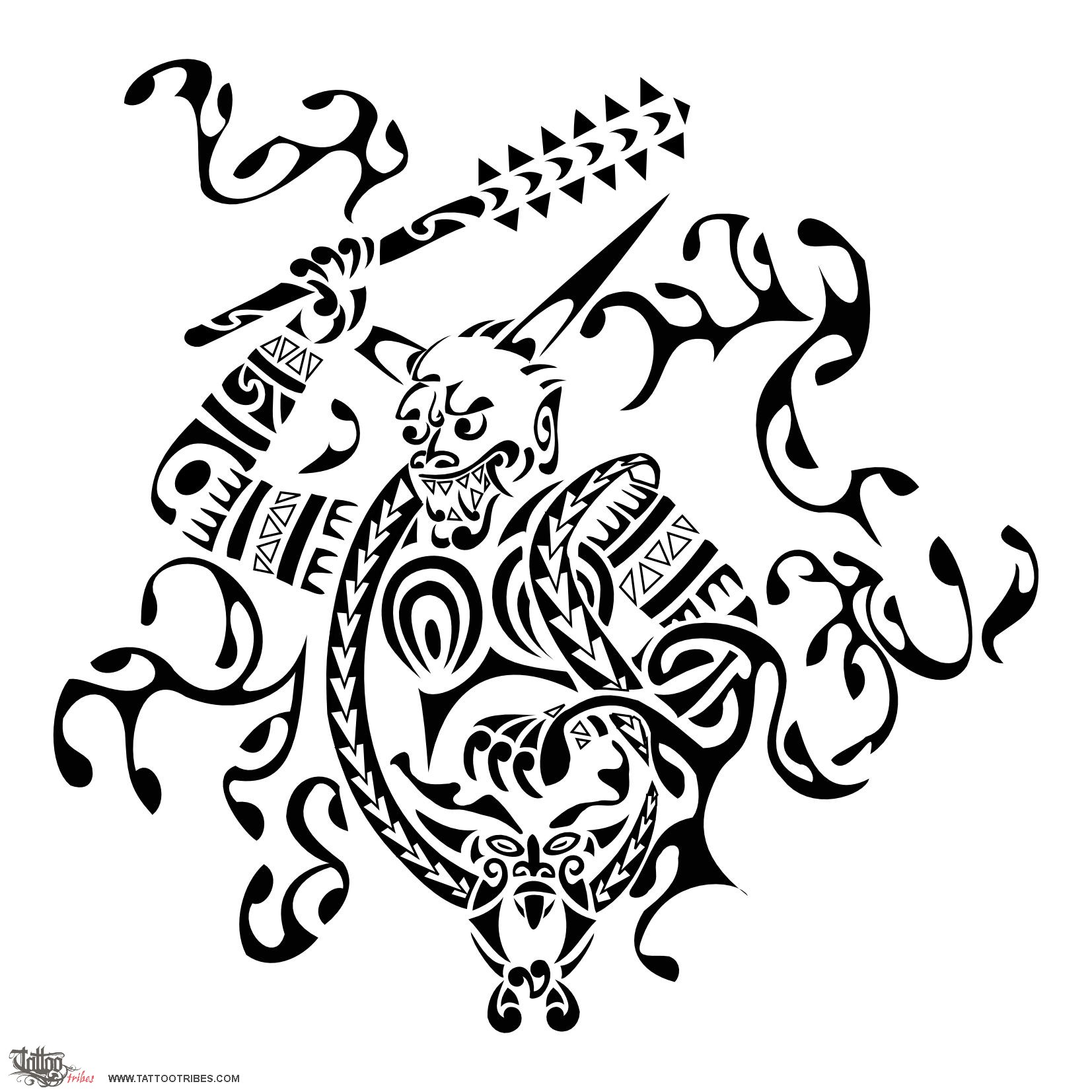 Waves too are Maori styled but they take over the ones of Japanese styled storms, and the symbols used for the demon decorations indicate strength, adaptability and protection (nowadays onis often have a protective connotation).