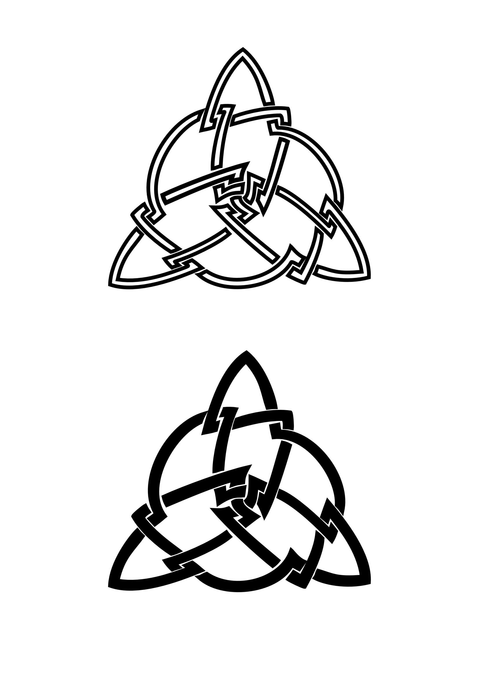 This version of the triquetra symbol embodies most of the better known celtic symbols, usually associated with bonds between the material and spiritual world, and the idea of eternal life: triquetra, link between past, present and future, circle and knots.
