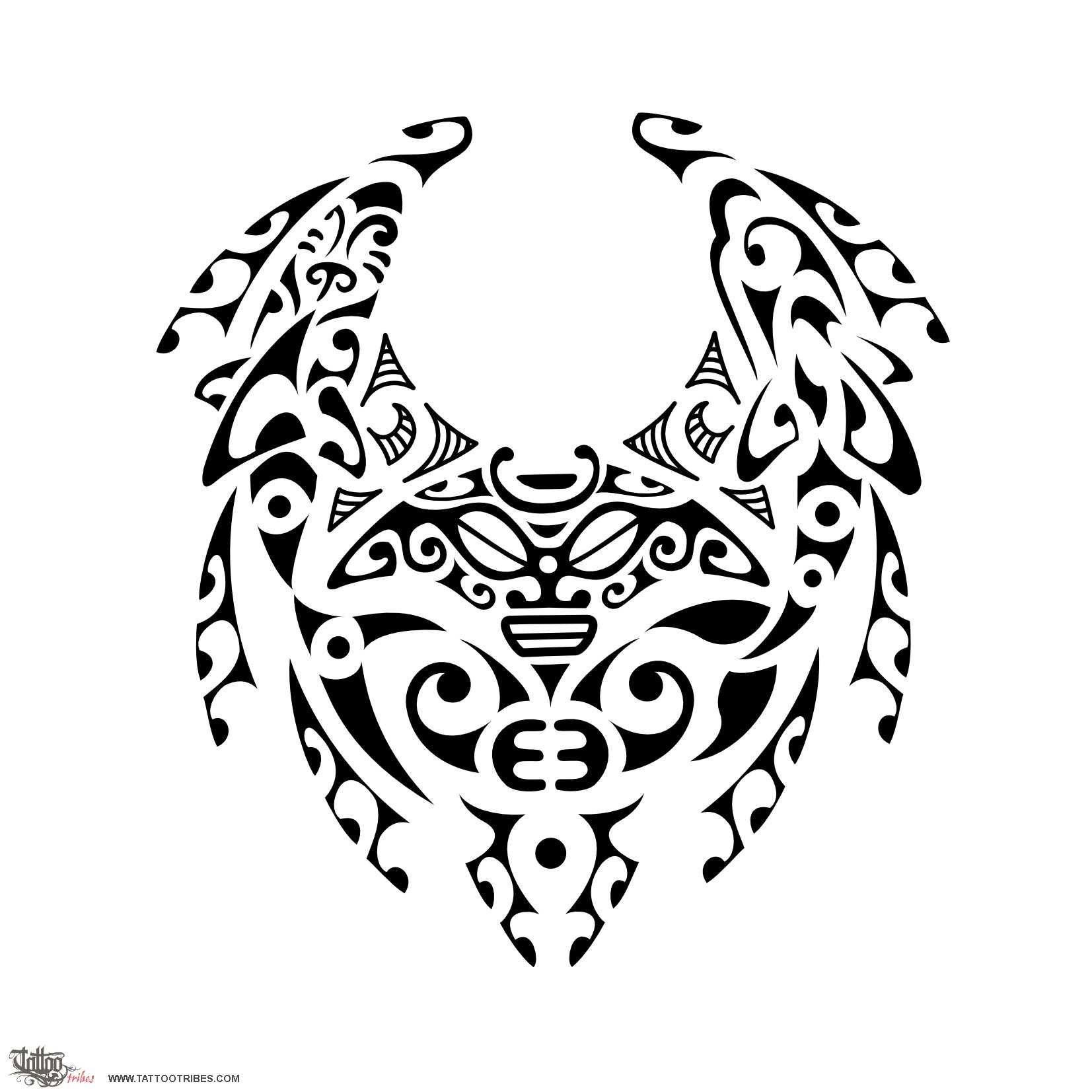 The central manta with a tiki inside symbolizes freedom and protection, the shark on the left is for adaptability and strength and the dolphin on the right is for friendship and happyness. Waves represent here change and eternal movement, and the general shape recalls a bat because in China bats are held in great honour. The word for bat is pronounced "fu", like the word for "luck", and thus the bat is associated to good luck and prosperity. Bats are often depicted in groups of 5, around a longevity symbol, to symbolize the 5 Fortunes: good luck, prosperity, wealth, happyness and longevity.