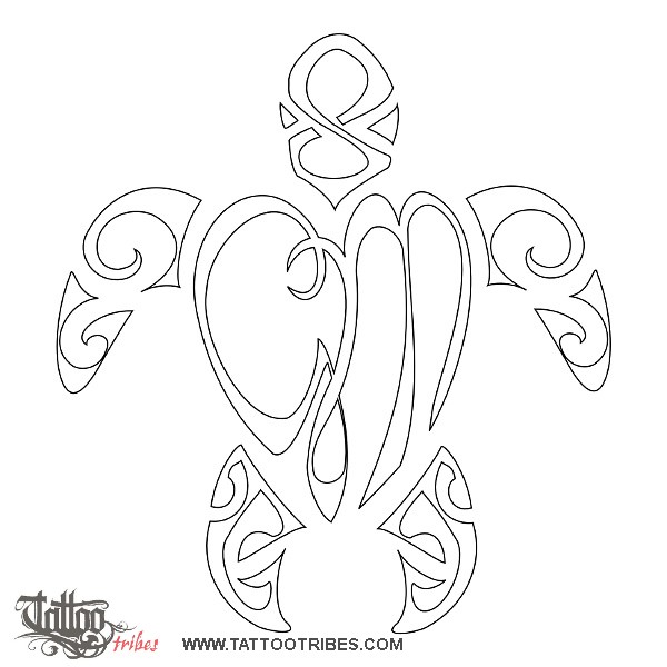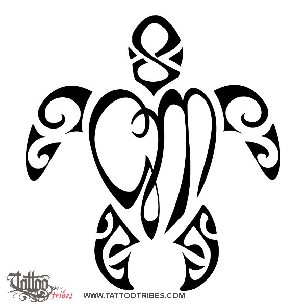 Turtles symbolize family and the traveller, and the shell was here shaped like a heart by joining the head letters of their names.