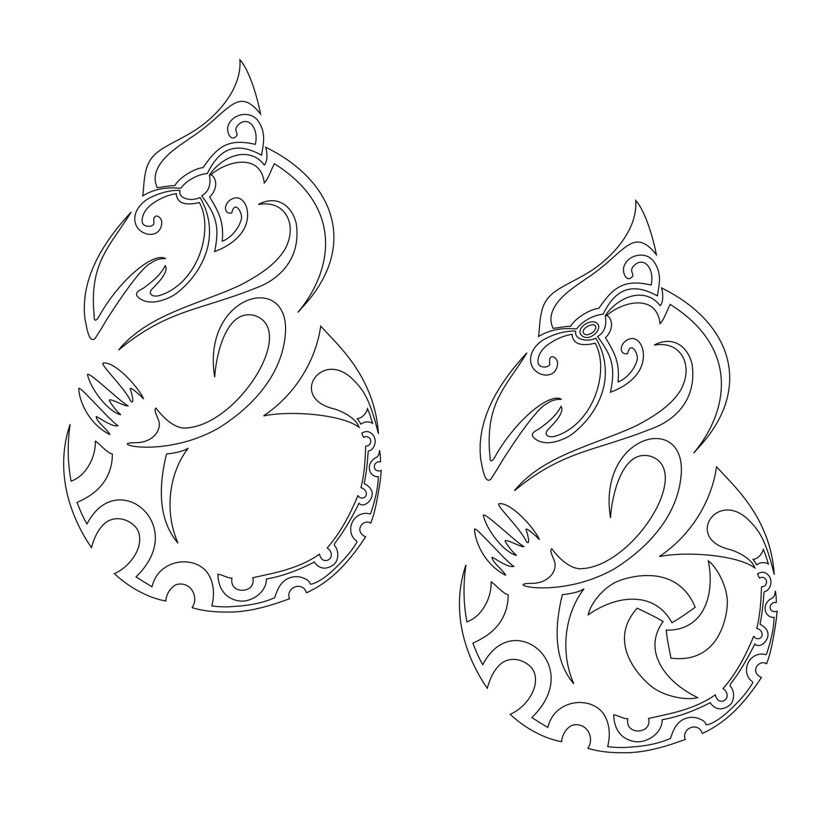 In this specific design, the analogy with the same belief shared with the Celtic culture was remarked by adding a stylized triskell around the eye, and of another one inside the tail circle in the second version.
