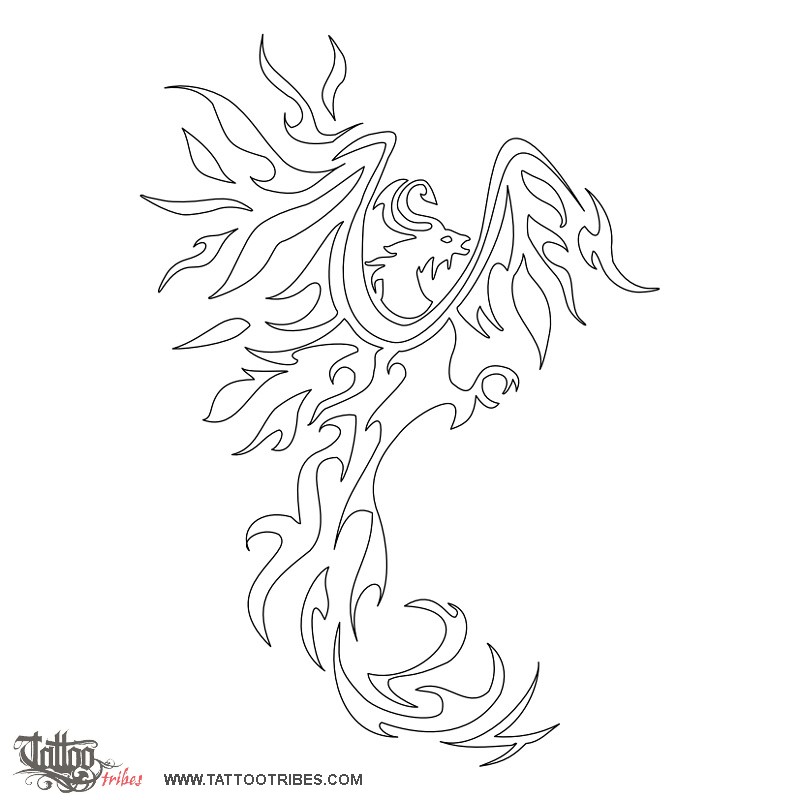 Jorg requested this design of a phoenix to symbolize a rebirth from a hard time, incorporating a V which is the first letter of her daughter´s name, and the numbers 2,3 and 4 (the end of the tail) which have a special meaning for him.