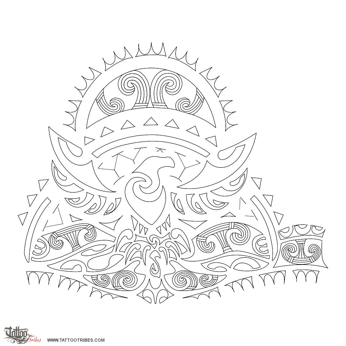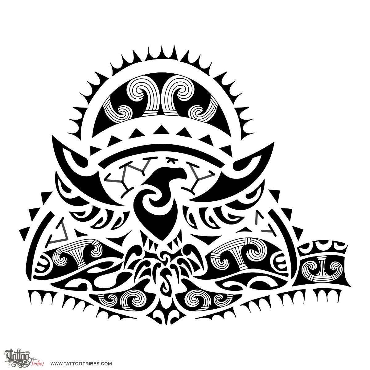 The manta ray below the eagle represents freedom and protection, mountains are for stability and shark teeth for adaptability and protection.