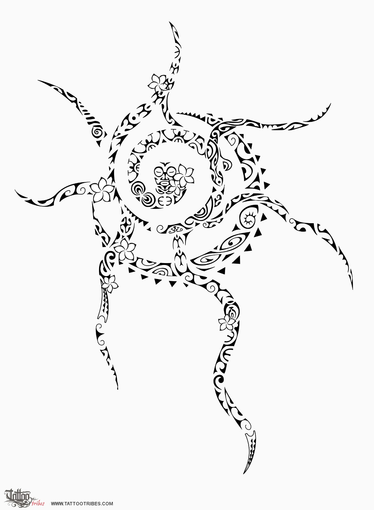 Polynesian tattoos explainedIt starts from low on the back to end on the front of the shoulder to symbolize the past and the future; we placed symbols like the moray eels on the lower back rays, for past difficulties and hard times, and we used positive symbols for the future, like a fish hook (prosperity and wealth), a seashell (love, intimacy and safe shelter) and chasing birds (freedom, always there to help the loved ones). It represents leaving bad times behind for a positive future. The sun itself has a spiraling shape to enforce the idea of developement and growth. Spirals are also symbols representing the sun and eternity.