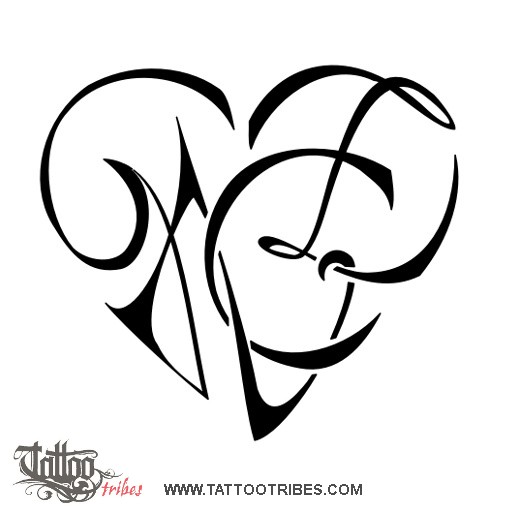 Joining several letters in a way that graphically resembles a stylized heart we create what here on TattooTribes is called a heartigram. It symbolizes the love and union shared by the people whose letters are represented.