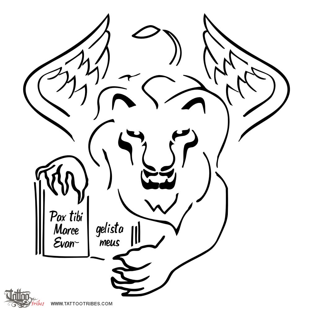 Polynesian tattoos explainedThe lion of St.Mark has been in history the symbol of the Republic of Venice. It portraits a winged lion with an open book between its front paws, showing the latin sentence "Pax tibi, Marce, evangelista meus", which means "Peace be with you, Marco, evangelist of mine". It represents sovereignty.