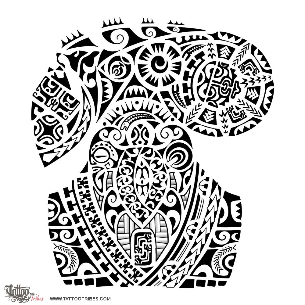 Polynesian tattoos explainedMarkus requested this tattoo about his life: the turtle on the shoulder and arm represents family, which has always been present, trying to give him joy (the sun above it) and stability (the mountains making it).