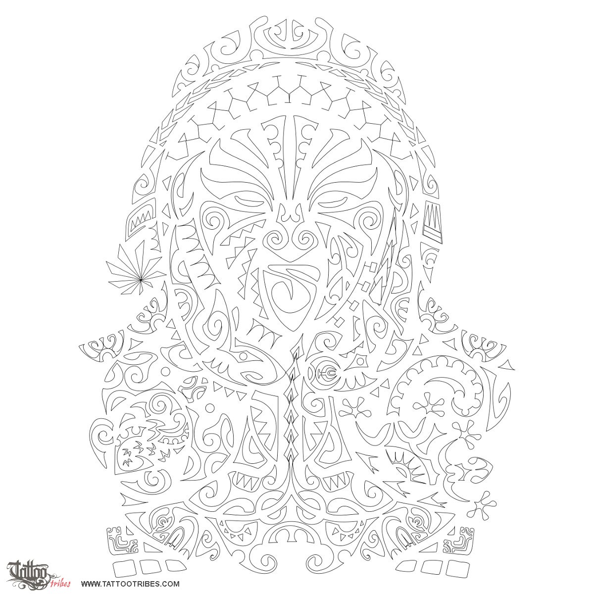The mask of the warrior with his tongue stretched out in the middle of this tattoo requested by Dempsey represents defiance, a challenging warrior and we used the shark and hammerhead shark motifs in it (adaptability, strength and tenacity).
