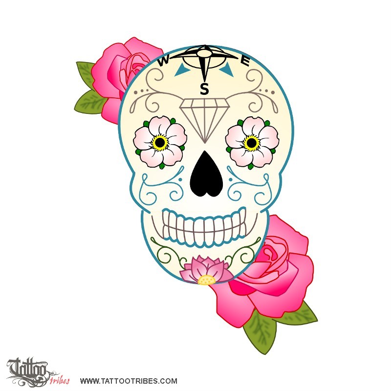 Ultimate 3x2 bundle: $This skull with lotus flowers, a diamond and a compass was requested by Camilla.
