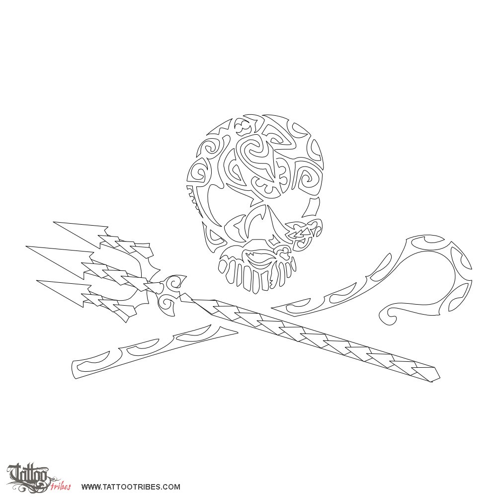 The Sea Shepherd logo, the jolly roger with crossed shepherd stick (here designed by waves) and Neptune´ trident (here made of spear heads), was redesigned with Polynesian composite tattoos in mind as requested by Joanne, joining several marine life animals to compose it, in addition to the dolphin and whale from the original logo.