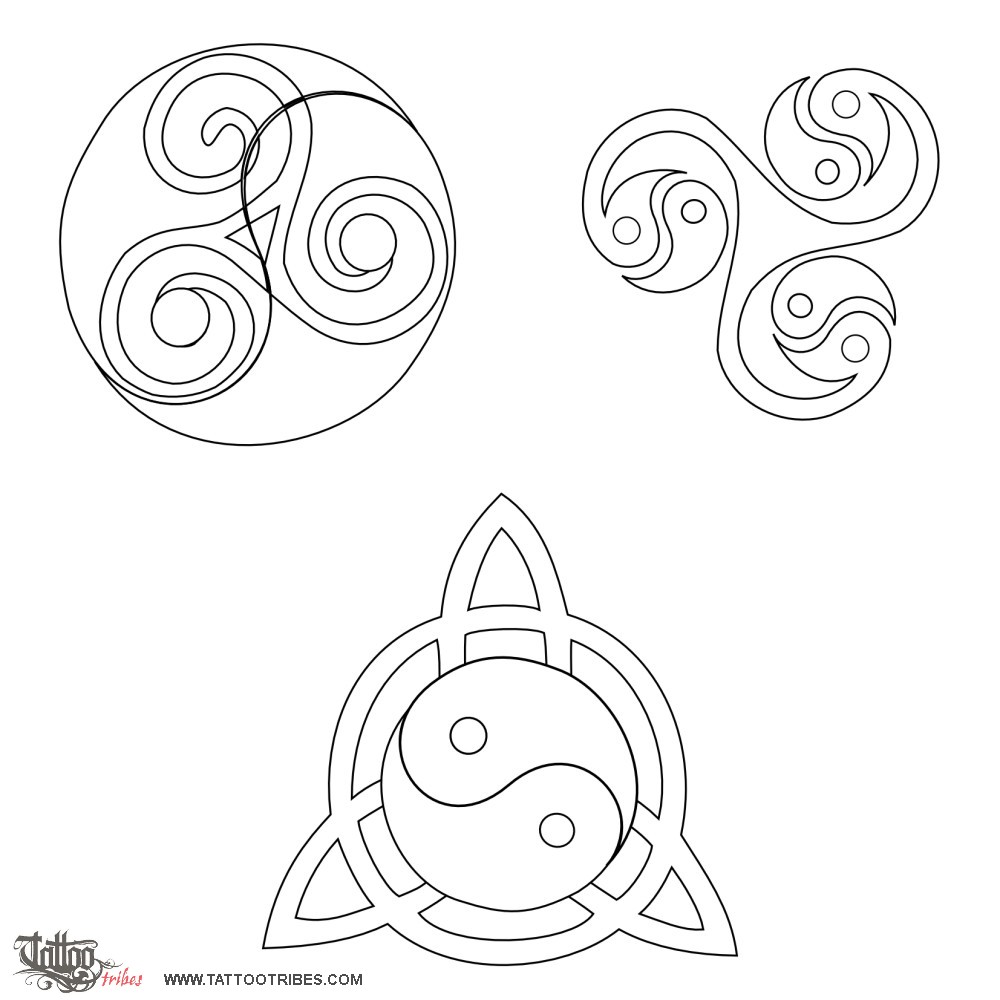 Laura requested a design which would blend the yin and yang symbol with a triskell or a triquetra.