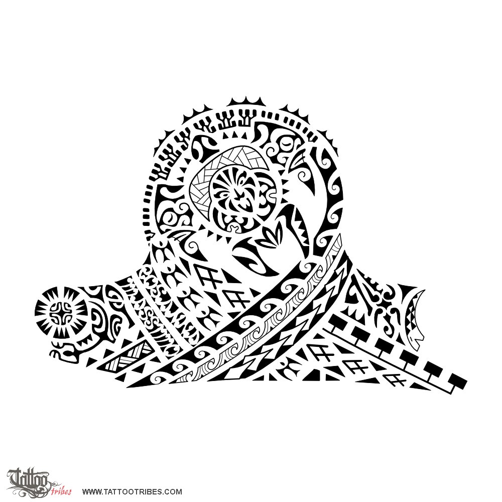 Polynesian tattoos explainedThe turtle is the main element of this halfsleeve tattoo requested by Alessandro, swimming towards the future protected by tikis on the front flippers and with a fish hook (sharp mind, knowledge) and shark teeth (adaptability and strength) on the back flippers.
