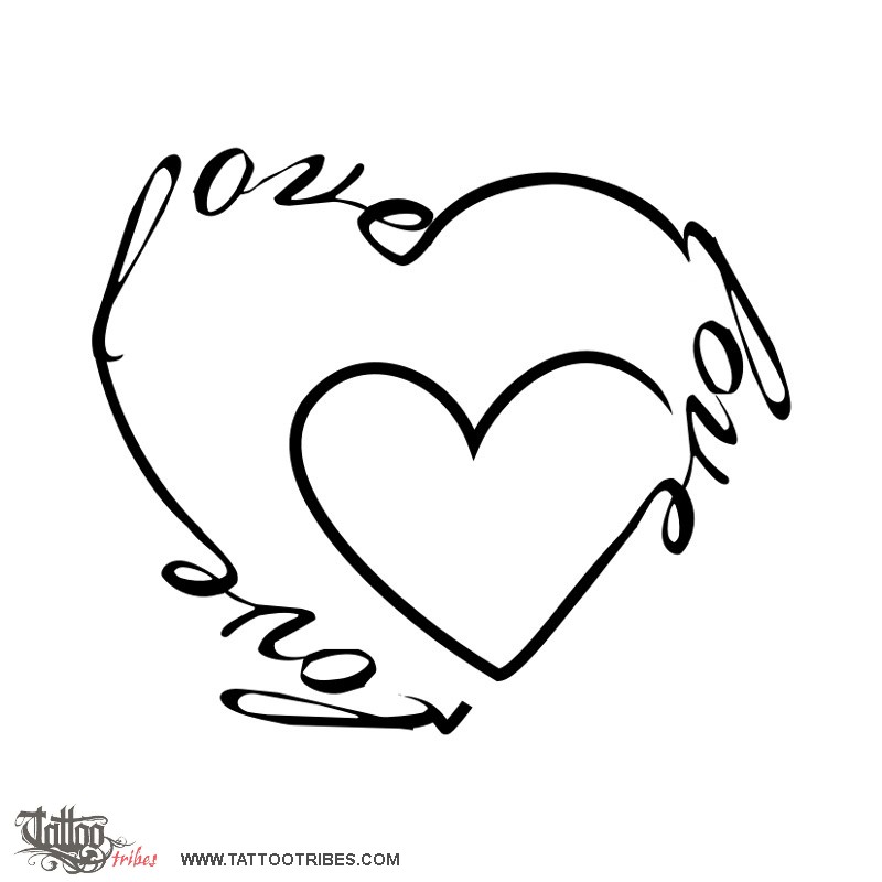 We created this tattoo with the three words integrated into two concentric hearts to symbolize different hearts woven into one.