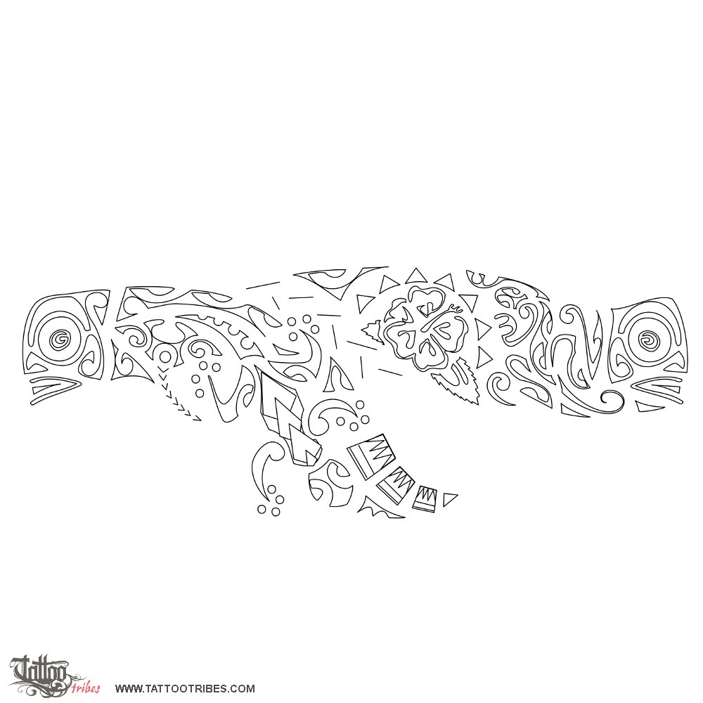 The two tiki faces protect him from every direction, the gecko and lizard are for health and luck and the manta for freedom and beauty.