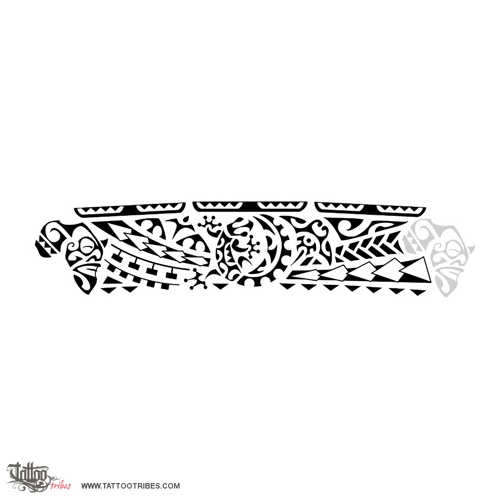 Africa is on the left (the tiki that shapes it represents protection), with a path of Kamehameha nearby and with a row of spear heads above it, crossing the whole design, for the warrior spirit.