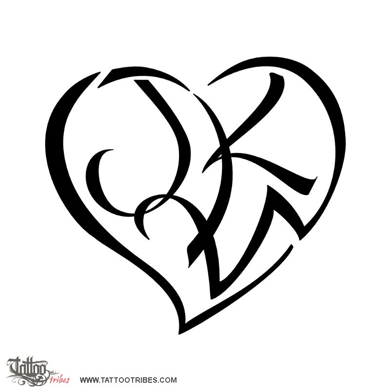 V+W heartigram tattoo photo
