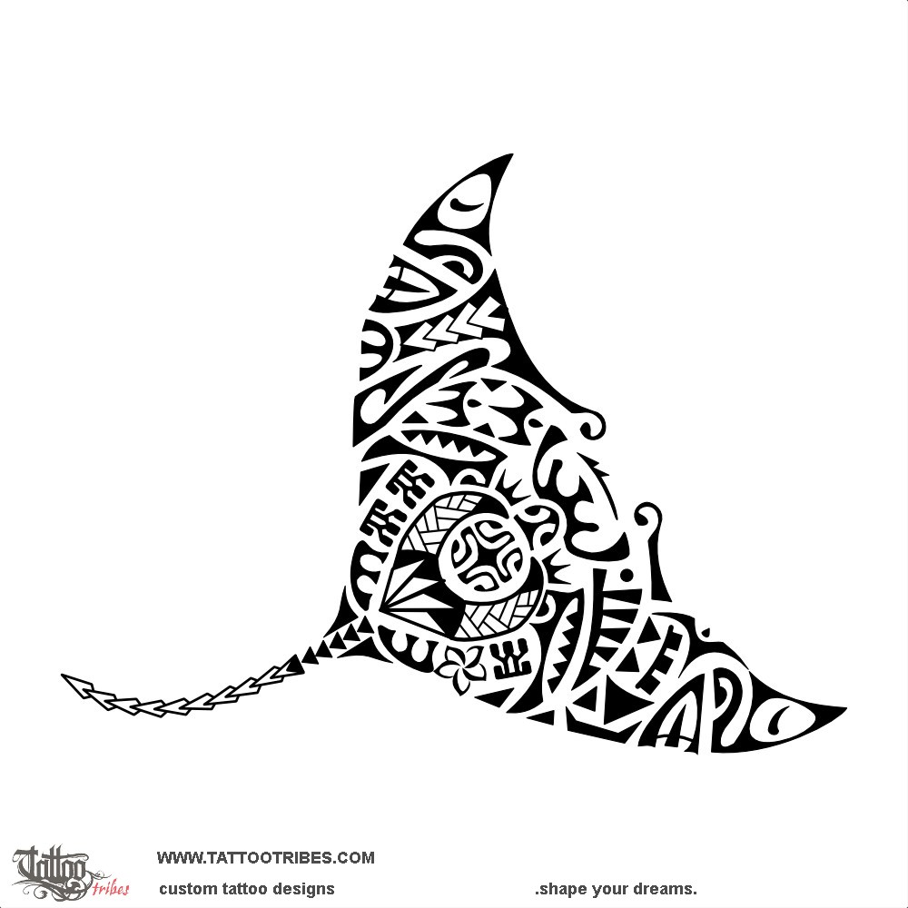 The two tiki on the tip of the wings protect family from all sides and the manta itself is a symbol of beauty and freedom.