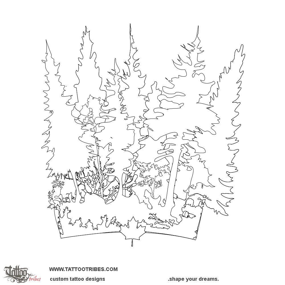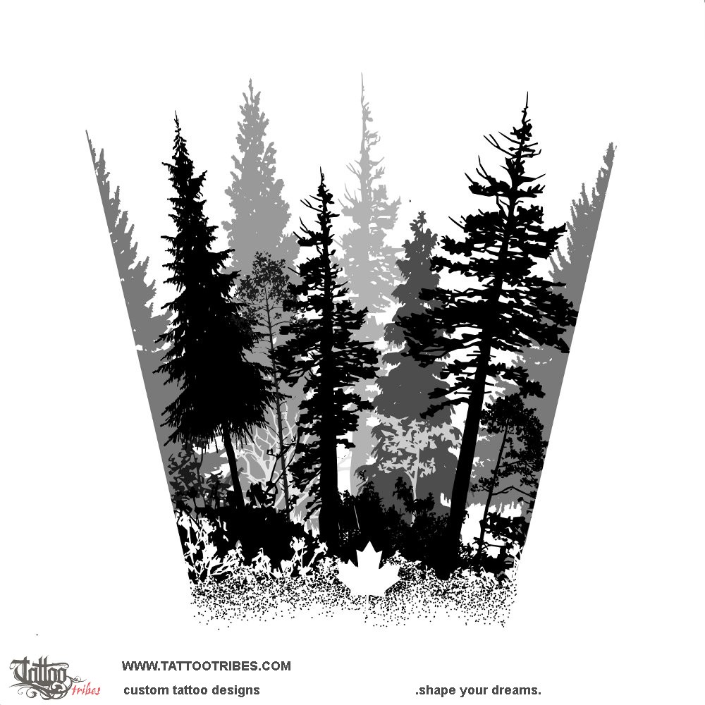 Ultimate 3x2 bundle: $Paul asked for a forest cuff tattoo designed to cover his forearm, with different shades of black to give the feeling of depth and with a Canadian maple leaf at the base.