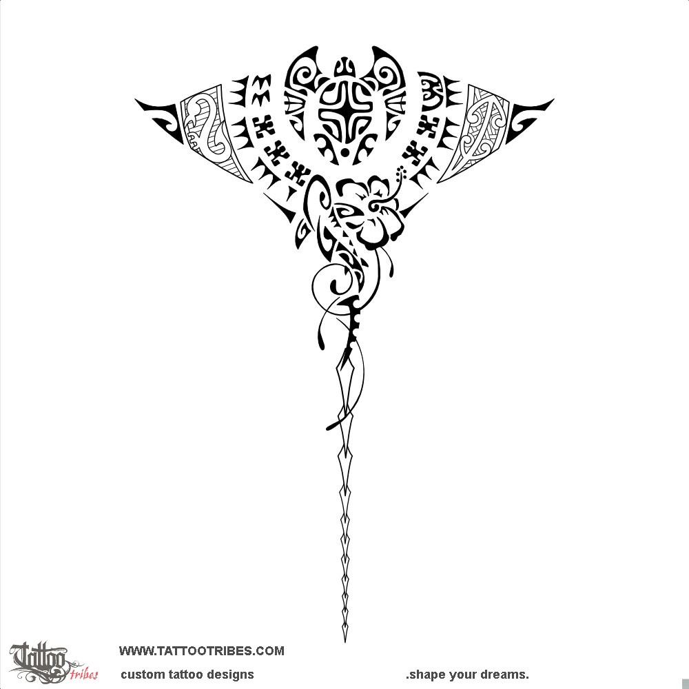In this stingray tattoo for the back the turtle is central to symbolize the importance of family to Norma, for whom we prepared this design.