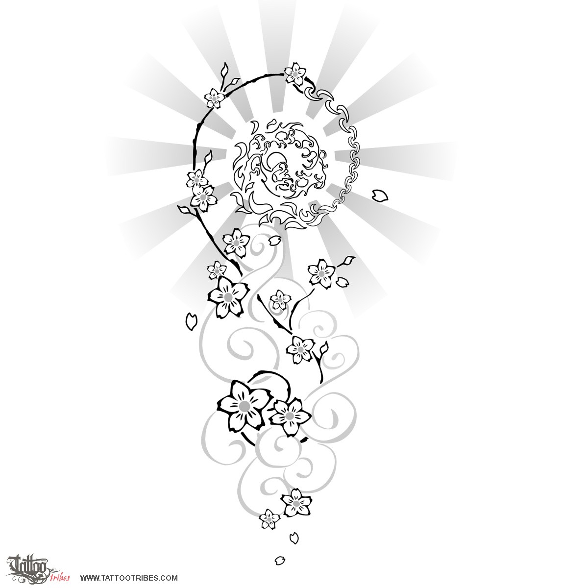 In this design we wanted to symbolize the idea of karma balancing. From a "cloudy" period, the sun is coming back, and the two opposite spirals of the cherry branch represent this inversion. To the serene part correspond the balance between opposites, fire and water, yin and yang.