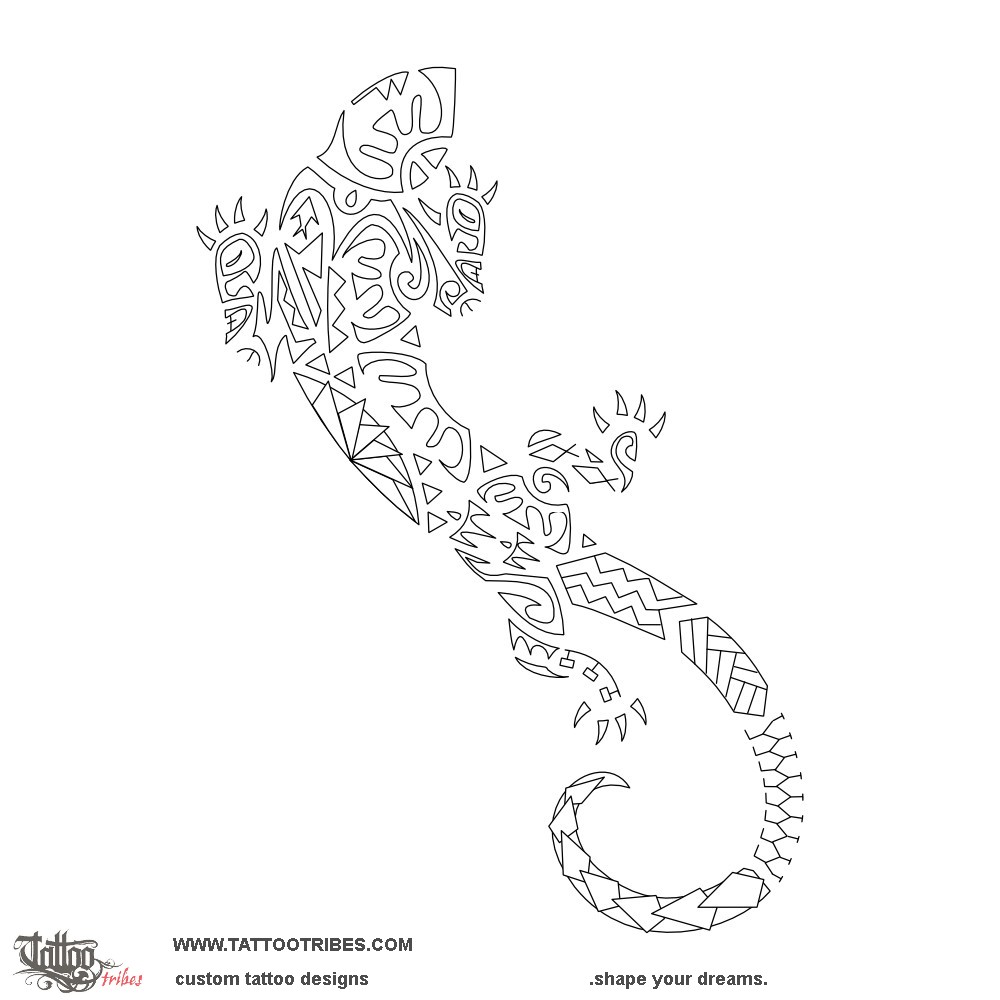 Polynesian tattoos explainedLooking from top to bottom at this polynesian style lizard tattoo designed for John, a warrior can be seen in the head guiding his family, represented by the flax leaves in the left side of the lizard´s body. On the right side, two smaller enata represent his children (they have a small koru nearby to symbolize children and new life) and a bigger enata between them for his wife.