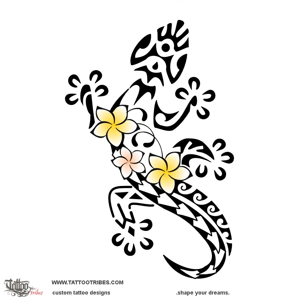 Polynesian tattoos explainedThis Polynesian style tattoo of a gecko was prepared for Rachel, who is represented in the gecko´s head guiding her family, always being a reference (the star) to her daughters and always supporting them (the chasing birds).