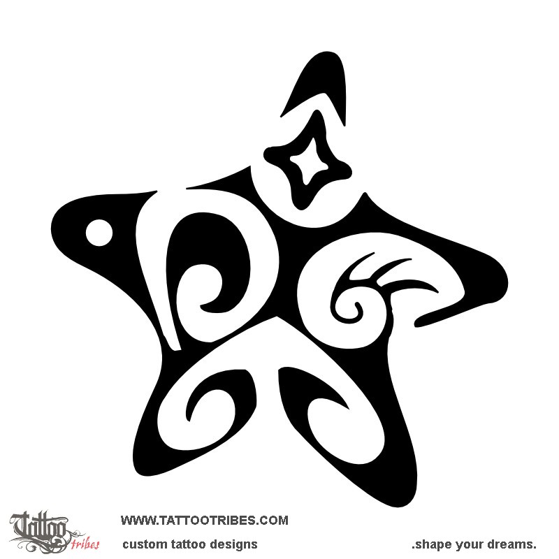 The star on top represents a fixed point, a goal to be pursued with tenacity (the hammerhead shark motif in the lower part of the tattoo).