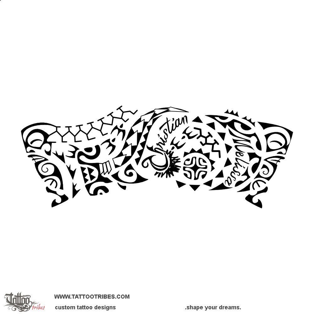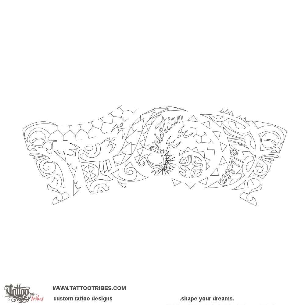 Ultimate 3x2 bundle: $This Polynesian style band tattoo with irregular edges was prepared for Andrea and it incorporates the names of his two children inside of a sunmoon, with his son in the sun part and his daughter in the moon side.