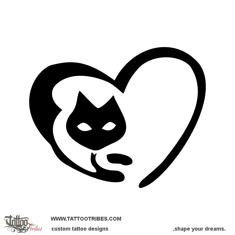 This heart tattoo that draws the silhouette of a cat has been prepared for Carla.