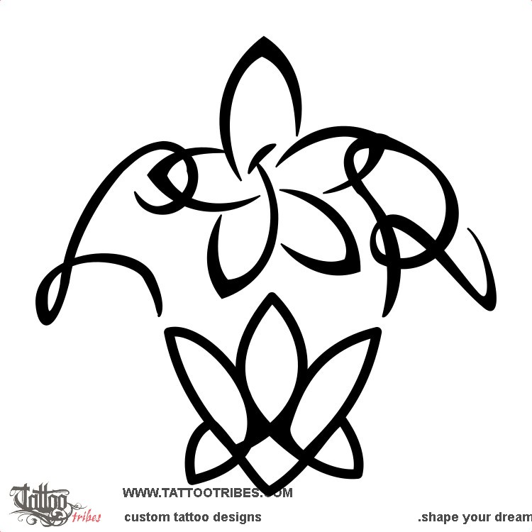 Ultimate 3x2 bundle: $Lina asked for a minimal turtle tattoo that would include a flower of plumeria, a lotus, and the letters L + J + R.